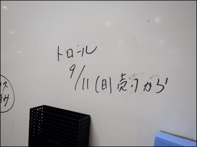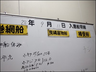 その日の水揚げの状況が書かれたホワイトボードが、あります。