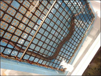 夕方には、卸すので、ザルのまま、水槽に入れておきました。