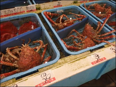 トロール漁で揚がった高足蟹(たかあしがに)が、活きたまま、生簀に入っていました。