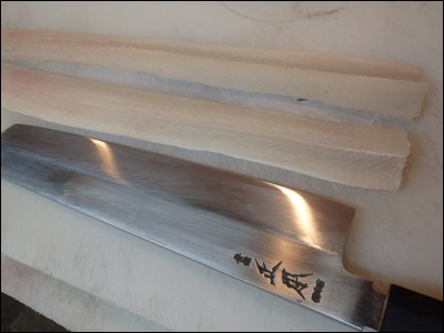 鱧の下拵えに欠かせない骨切りをしました。