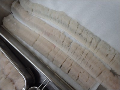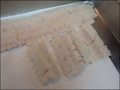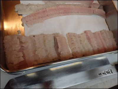 落としに仕立てるため、骨切りをし、包丁しておきました。