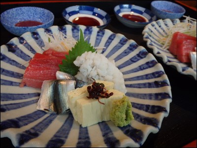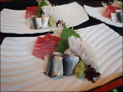 刺身は、生の本鮪(大間)、鱧(和歌山)、新子(佐賀)の三種盛りにしましたが、通常は、
