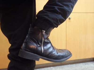 これからの寒い時季、レインシューズを履いており、訊いたところ、意外と温かいとのことでした。