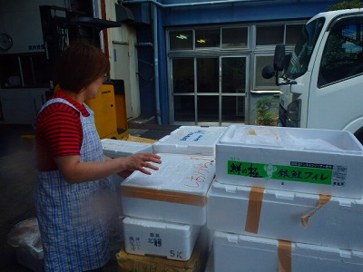沼津魚市場の周辺には、包装資材などを扱う専門店があり、配達もしてくれるのですが、仕入れに行ったついでに、