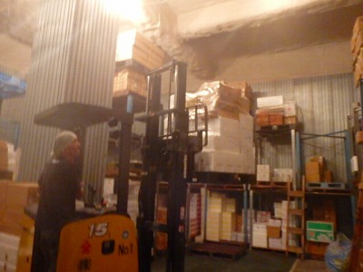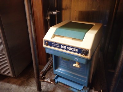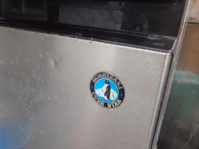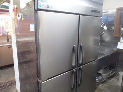 裏の厨房にある冷蔵冷凍機で、左側が冷蔵庫で、右側が冷凍庫になっており、冷凍庫の上に、
