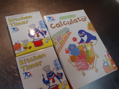 ホシザキ70周年記念ノベルティのキッチンタイマー&計算機