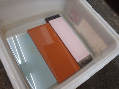 入れておき、砥石直しは、ようやく終わりましたが、このようにしておくのは、使いたい時に、すぐ使えるように、砥石自体に、吸水しておくためです。