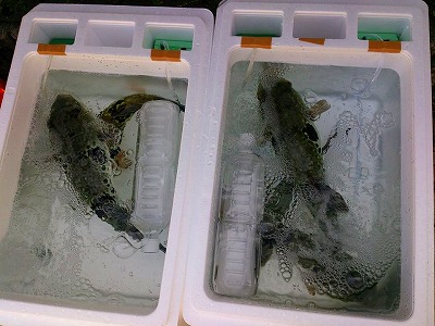 また、海水温が上がらないように、凍らせたペットボトルも、入れてあります。自称“富士市でふぐが一番好きな料理人”としては、ここまで、ふぐをケアしてくれると有り難い限りです。