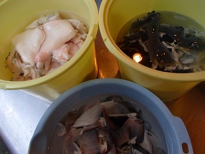 先週の水曜日から土曜日までに仕入れた27本分のふぐ皮の仕込みが始まりました。