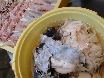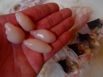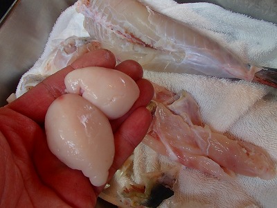 卸し、メスが1本で、オスが2本でしたが、オスであることが分かる程度の白子でした。水槽にいる3本は、明日の朝卸す予定ですので、