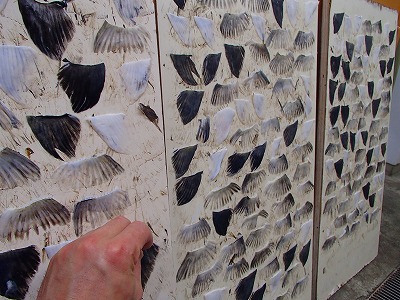ひれ酒に使うために、板に貼り付けました。その数、約200枚。全て自分独りで卸したものとはいえ、改めて見ると、その数に驚きました。