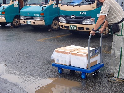 焼津の魚市場の構内を歩いていると、保冷車から、