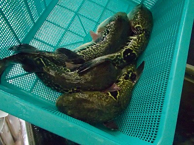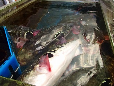 4本の天然のとらふぐが、活きたまま届けられ、この後、全てすぐに卸したのですが、