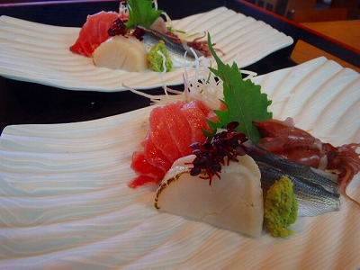 蛍烏賊(富山湾)、帆立(北海道)、小肌(佐賀)と共に盛り付け、会席料理の刺身で、お出ししました。