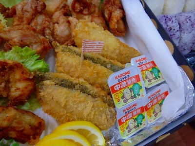 色んな魚が、所狭しと、並べられています。並べ終わった発泡スチロールの中を見ると、