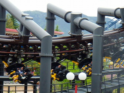 向かいました。前回、来た時に、乗れず仕舞いでしたので、今日を待ちわびていたのです。ちなみに、家族で、絶叫マシンに乗れるというより、好きなのが、自分と上の娘で、女将兼愛妻(!?)の真由美さんと下の娘は、全く駄目なのです。