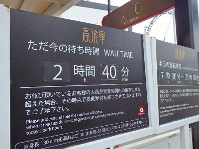 2時間40分待ちでしたので、あえなく諦めました。結果として、娘と一緒に、『ええじゃないか』の順番待ちをしなかったことが、徒(あだ)になったのでした。