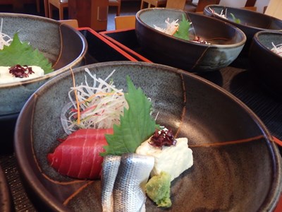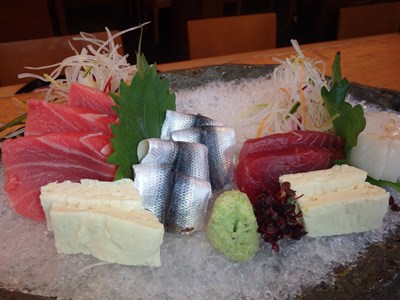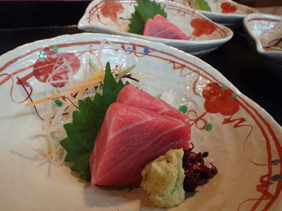 中とろと赤身を使った刺身の盛り合せをお出ししました。