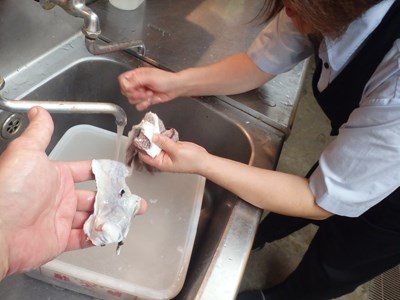 北海道産の秋刀魚の水洗いをしてくれていました。