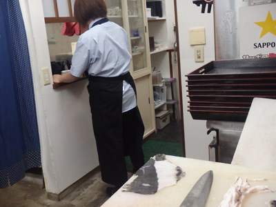 昨日、ふぐ皮の下処理が終わっていないことをお話ししましたが、夜の営業の合間を見ながら、