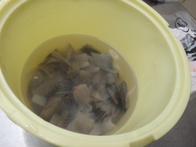 火曜日に卸した11本のとらふぐの皮の掃除をしなくてはならなかったので、お客様がお帰りになったら、