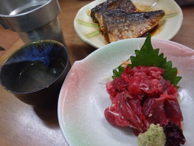 鯖の味噌煮、生の本鮪の手くずとくれば、白御飯にしてもいいけど、熱めの米の水で、“お疲れちゃん♪”と相成り、これで明日も、乗り切れそうです。