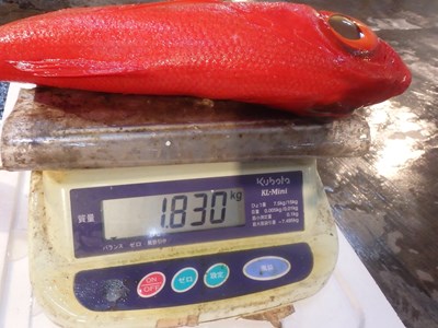 1,8キロの大きめのものでしたが、金目鯛は、2キロを越えるものは少なく、大きめというより、大きいと言った方が正確かもしれません。
