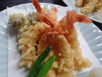 海老と牡蠣の天ぷらでしたが、牡蠣は広島産の生のもので、海老は冷凍のブラックタイガーで、