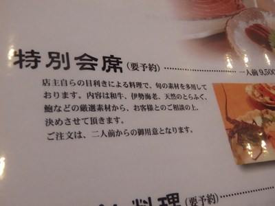 当店のお品書きにある『特別会席』は、