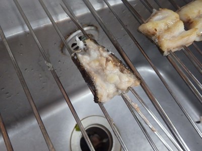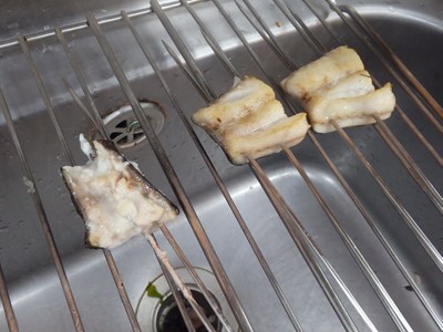 以前お話ししたことがあるように、銀鱈を『西京漬』に仕込む時は、身の一部や中骨を焼いてから、切身にします。