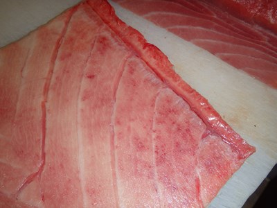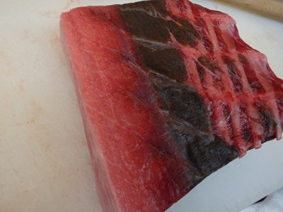 さて、二週間も色の変わらない銚子産の生の本鮪ですが、