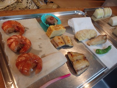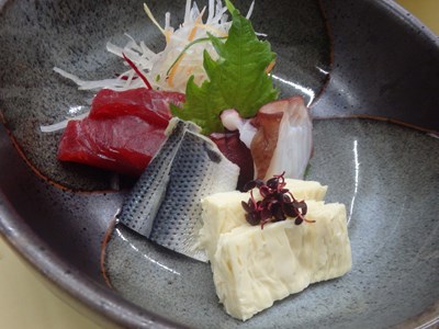 本山葵は卸さず、そのままで盛り付け、ここに盛り付けてあるのは、生の本鮪(銚子)、小肌(佐賀)、蛸(愛知)、湯葉です。