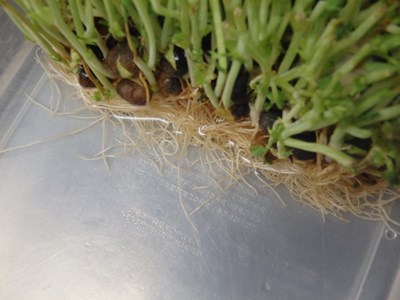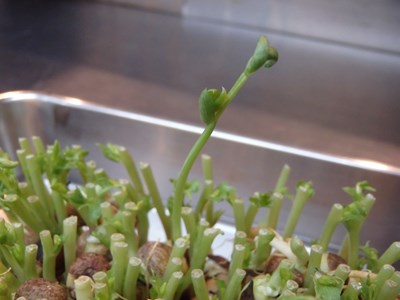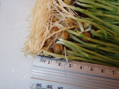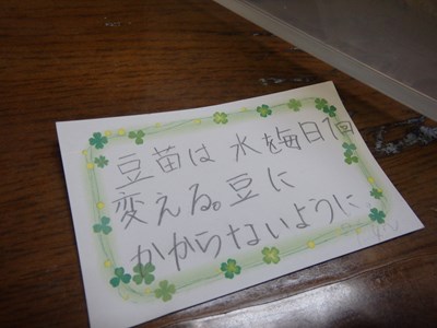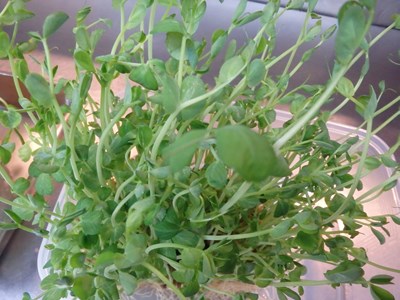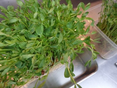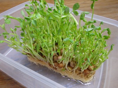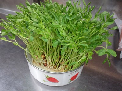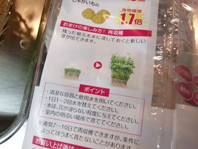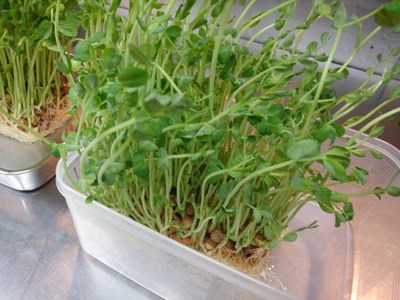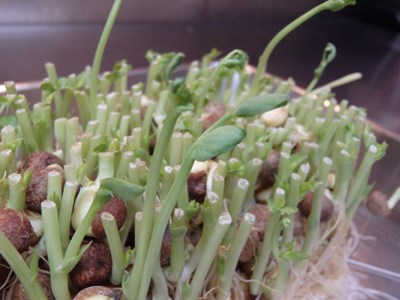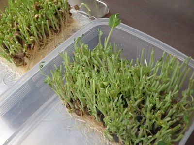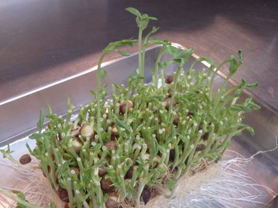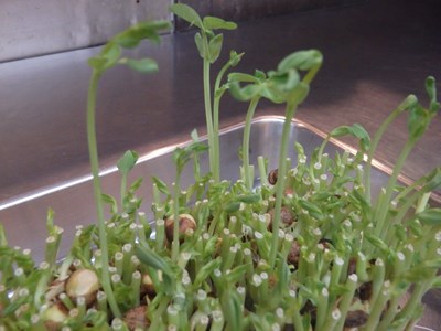 現在、豆苗の再生栽培に取り組んでいますが、今日で、