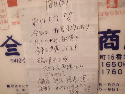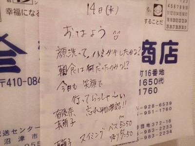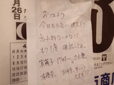 2通×3人宛ての手紙と日めくりのメッセージ以外にも、真由美さんがやっていた店の雑用の段取りのあんちょこも、自分だけでなく、バイトにも書いていってくれたので、チョンボすることなく、仕事もこなせ、かなり助かりました。