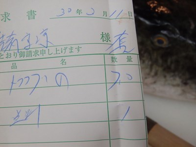 7,0キロでしたが、ジャンボちゃんという呼び名は、“ふぐに魅せられし料理人”の自分が、天然のとらふぐへの想いを込めて、勝手につけたもので、目方が4キロ以上のものを、そう呼んでいます。