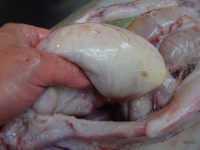 案の定のメスで、中からは猛毒ゆえ、食べることの出来ない真子が出て来たのですが、案の定というのは、天然のとらふぐは、オスとメスで成長の速さが違い、ジャンボちゃんの殆どは、メスだからです。