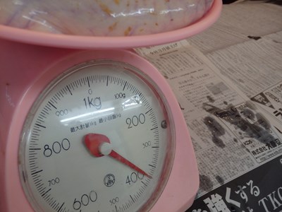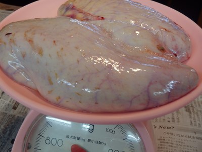 メスの生殖腺である卵巣は、真子と呼ばれ、猛毒ゆえ、食べることは出来ませんし、食べると、痺れていまいますが、参考のため、目方を量ってみると、