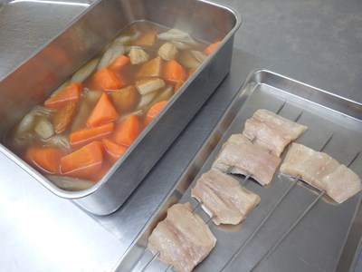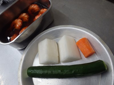 煮物(人参、牛蒡、白滝、さつま揚げ)、