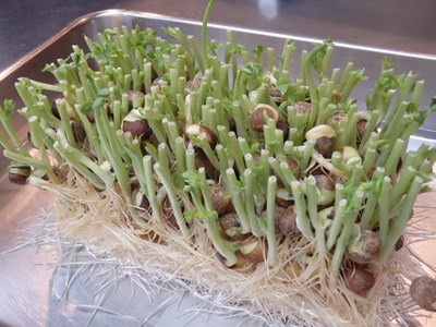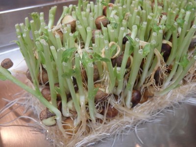 スプラウトは、もやし系とかいわれ系に大別され、茎が太く種子を頭につけたまま伸びてゆき、暗室のみで育て、緑化させないのがもやし系で、豆型のものです。
