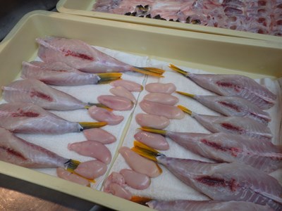 御覧のように、しまふぐは、ひれが黄色いのが特徴で、他のふぐを区別するのも、非常に簡単な種類でもあり、天然ものしかありません。