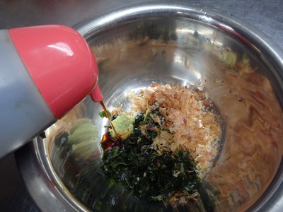 土佐醤油を入れ、よく混ぜ合わせたら、