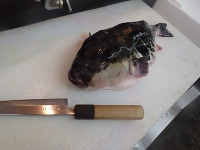 目方は9,5キロでしたが、“ふぐに魅せられし料理人”の自分にとっては、ふぐと言えば、天然のとらふぐですので、お決まりの萌え燃え・・・❤は無いので、あしからず。