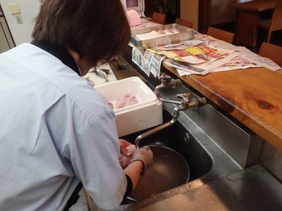 女将兼愛妻(!?)の真由美さんが水洗いしてくれ、