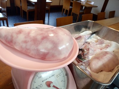 長崎県産の2,8キロのものでしたが、“ふぐに魅せられし料理人”の自分は、天然のとらふぐへの想いを込め、2,5キロ以上4,0キロ未満のものを、“BIGちゃん”と呼んでいます。