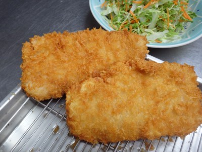 豚かつを揚げ、どちらも、揚物というかフライで、