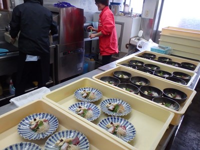 ただ、刺身だけは、お昼の法事とバスツアーのお客様の分だけで、