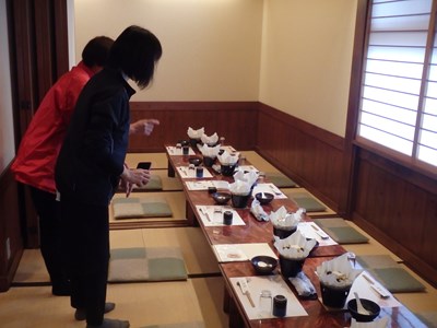 座敷のセットを確認し、お客様のご来店を待つばかりとなったのですが、入口には、