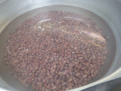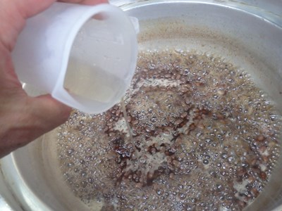 アクが浮いてくるので、丁寧に取り除き、小豆に火が入ったら、