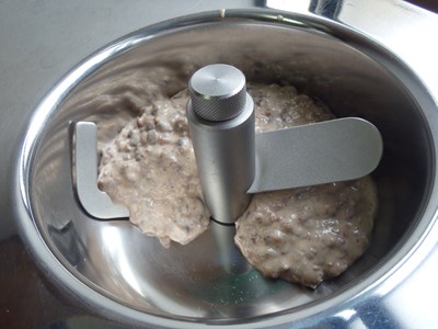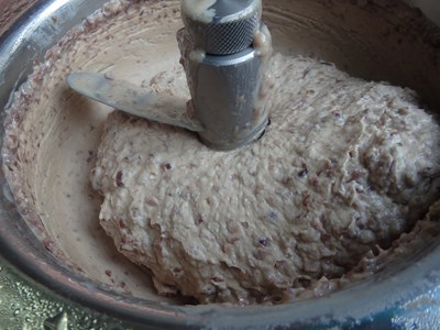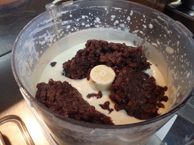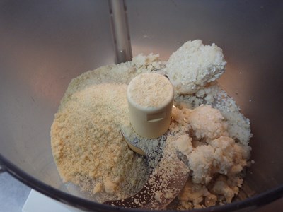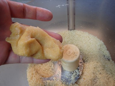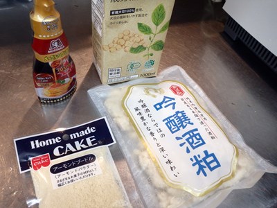 酒粕とアーモンドプードルを入れ、混ぜ合わせたら、