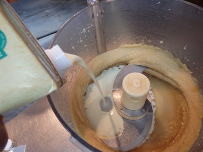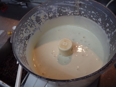 煮小豆に合わせるため、甘味の素を作るのですが、通常はカスタードクリームやアングレーズソースとなるのですが、今回は、マクロビオティックのアイスですので、卵、牛乳などを使いません。